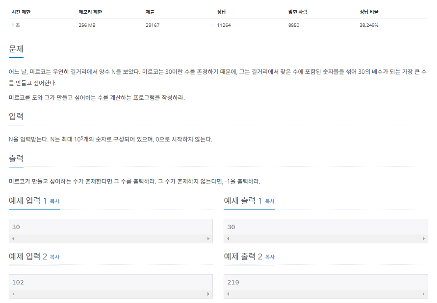 if '0' not in num: #입력에 0 이 없으면 30 배수 안되므로 -1